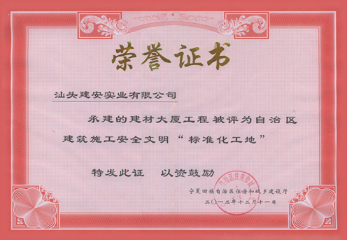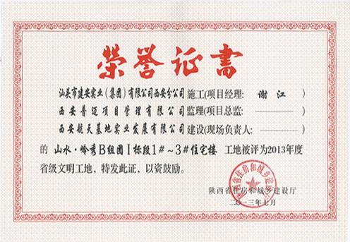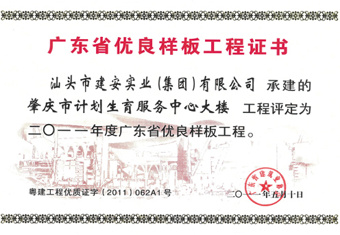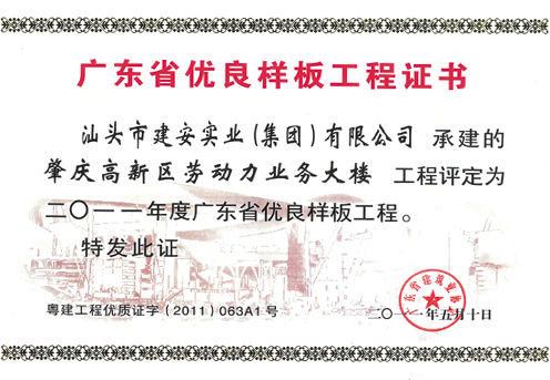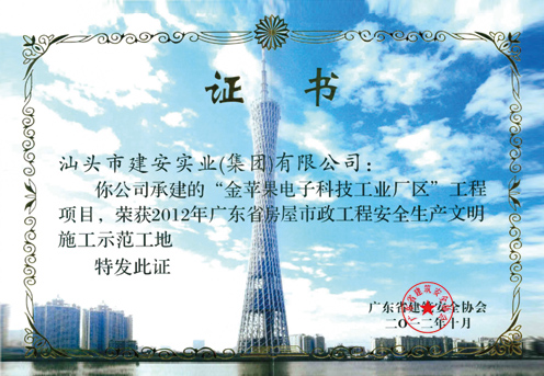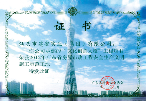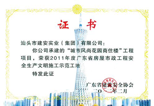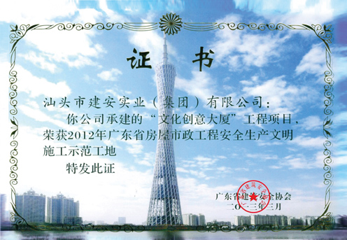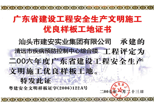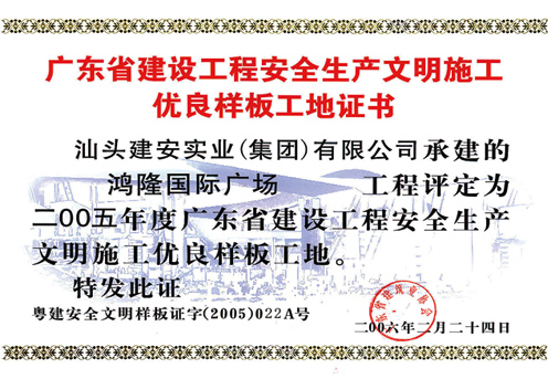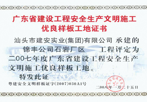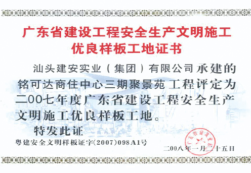 廣東省建設工程安全生產(chǎn)文明施工優(yōu)良樣板工地證書(shū)
