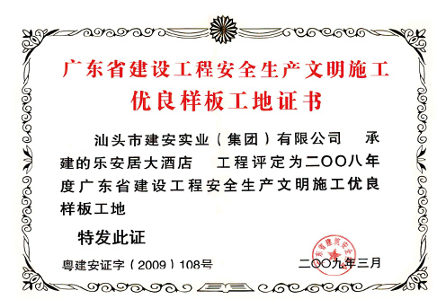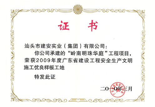 2009年度廣東省建設工程安全生產(chǎn)文明施工優(yōu)良樣板工地
